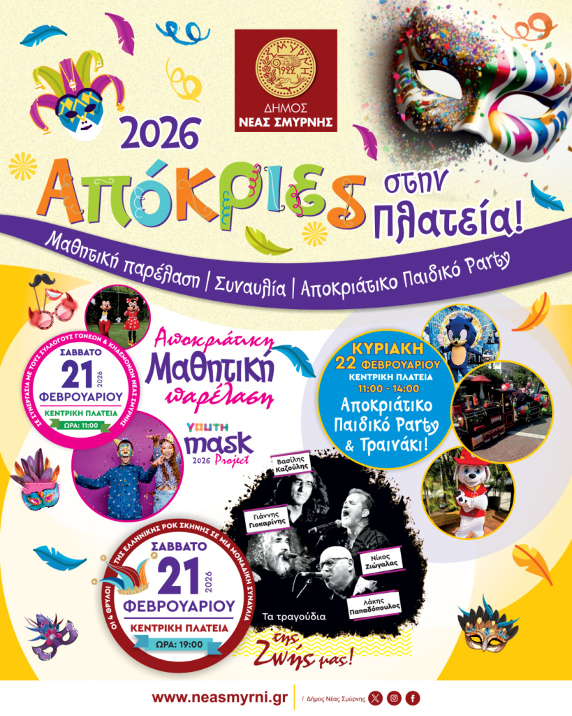 ΑΠΟΚΡΙΕΣ 2026: ΠΑΡΕΛΑΣΗ, ΣΥΝΑΥΛΙΑ ΚΑΙ ΠΑΙΔΙΚΟ ΠΑΡΤΥ ΣΤΗΝ ΠΛΑΤΕΙΑ