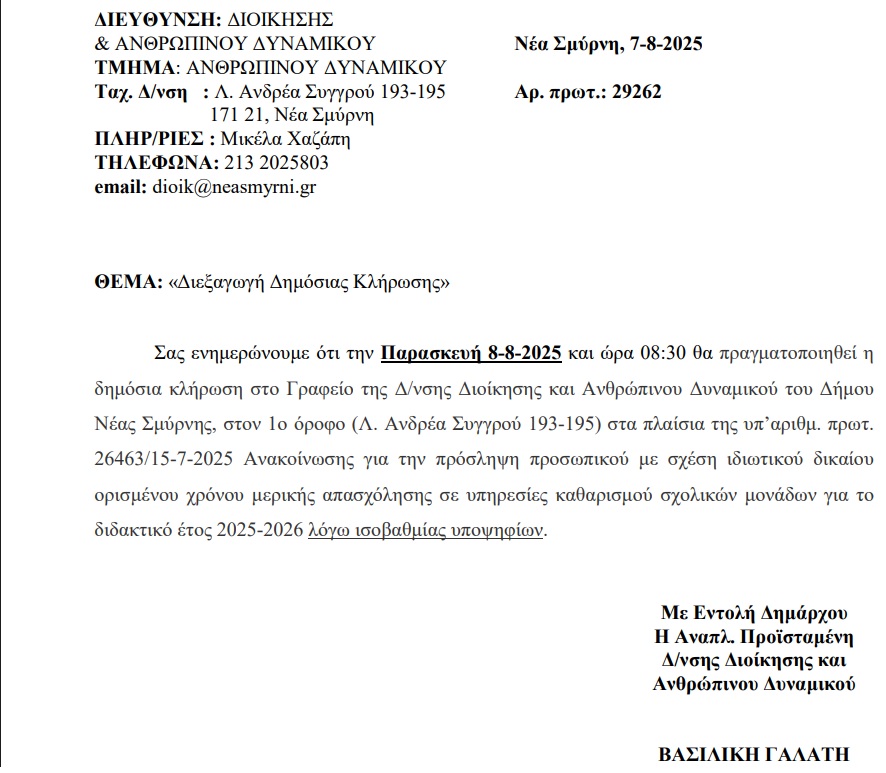 Διεξαγωγή Δημόσιας Κλήρωσης 8-8-2025